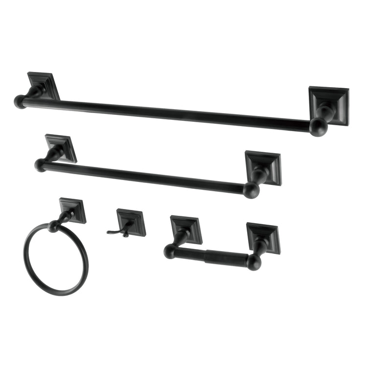 Kingston Tulare BAHK3212478K - Serano 5-Piece 18-Inch and 24-Inch Towel Bars Bathroom Accessory Set, Matte Black