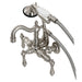 Kingston Heirloom CA1007T8 - Heritage Three-Handle 2-Hole Tub Wall Mount Clawfoot Tub Faucet with Hand Shower, Brushed Nickel