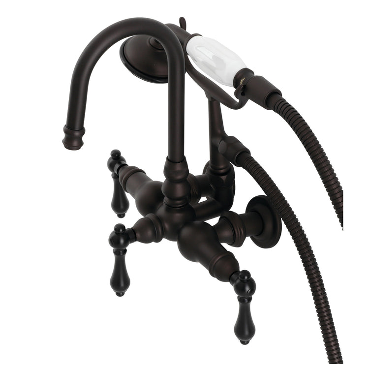 Kingston Heirloom CA7T5 - Vintage Three-Handle 2-Hole Tub Wall Mount Clawfoot Tub Faucet with Hand Shower, Oil Rubbed Bronze