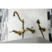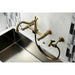 Kingston Heirloom KS1243PLBS - Heritage Two-Handle 3-Hole Wall Mount Bridge Kitchen Faucet with Brass Sprayer, Antique Brass