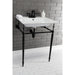 Kingston Heirloom KVPB25227W4MB - Edwardian 25-Inch Ceramic Console Sink with Brass Legs (4-Inch, 3-Hole), White/Matte Black
