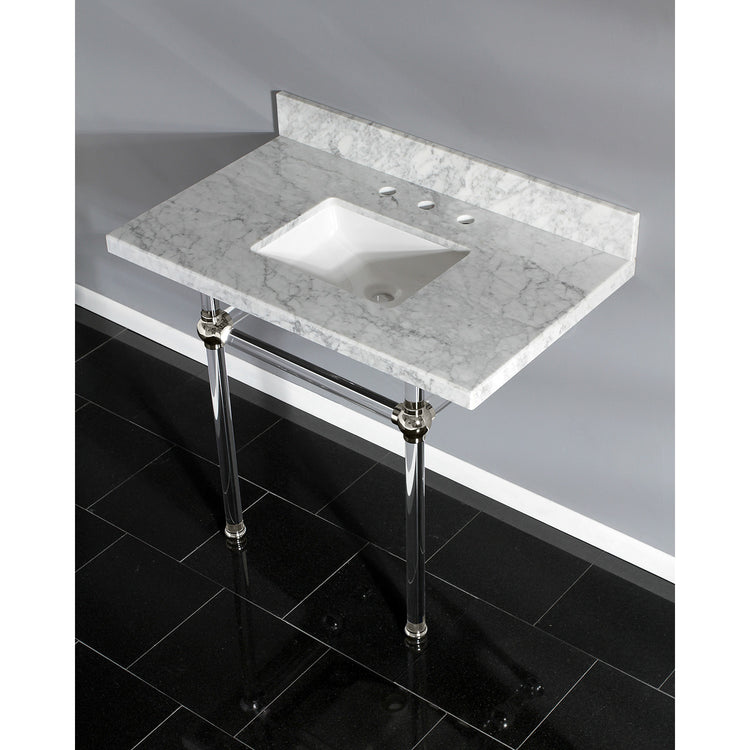 Kingston Tulare KVPB3630MASQ6 - Templeton 36-Inch Carrara Marble Vanity Top with Acrylic Legs (8-Inch, 3-Hole), Carrara Marble White/Polished Nickel