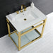 Kingston Sona VWP3122W8B2 - Quadras 31-Inch Ceramic Console Sink with Steel Base and Glass Shelf (8-Inch, 3-Hole), White/Polished Brass