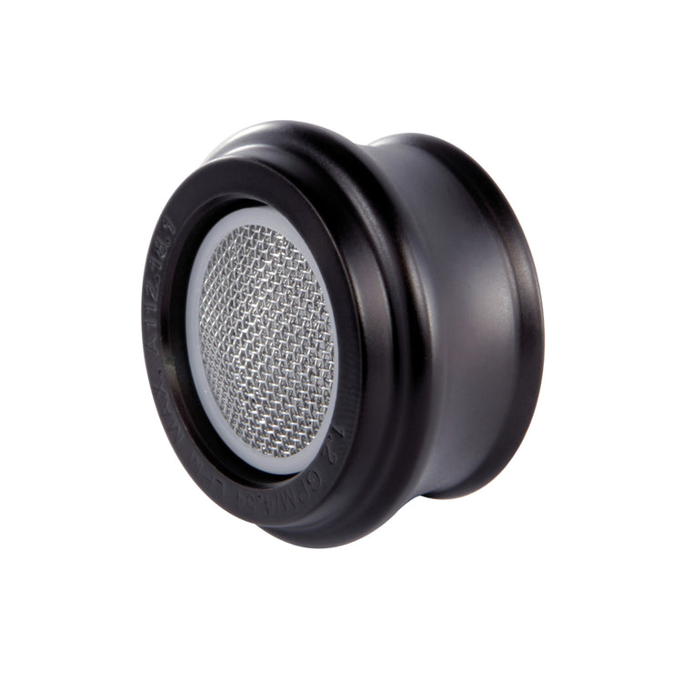 Installed at the ends of household faucets, aerators are designed with mesh screens to reduce splashing and dripping in sinks. A mixture of water and air is delivered while also helping to conserve water. This aerator's thread size: US female 55/64"-27 UNS connection. The water flow rate is 1.2 gallons per minute (GPM).