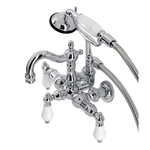 Kingston BrassKingston Heirloom AE424T1 - Vintage Three-Handle 2-Hole Tub Wall Mount Clawfoot Tub Faucet with Hand Shower, Polished Chrome Wall mount clawfoot...