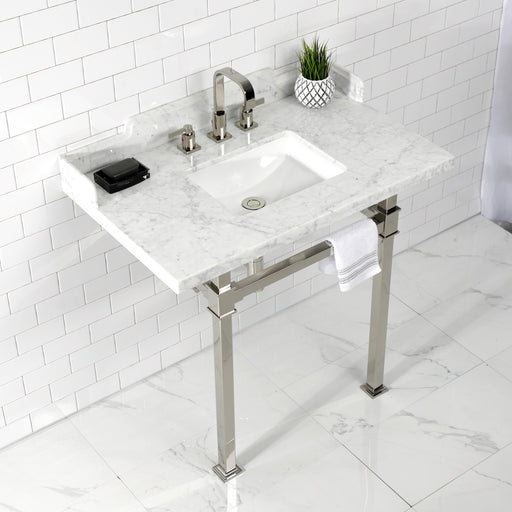 Kingston BrassKingston Sona LMS36MOQ6 - Viceroy 36-Inch Carrara Marble Console Sink with Stainless Steel Legs (8-Inch, 3-Hole), Carrara Marble White/Polished Ni...