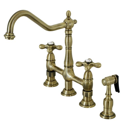 Kingston BrassKingston Heirloom KS1273AXBS - Heritage Two-Handle 4-Hole Deck Mount Bridge Kitchen Faucet with Brass Sprayer, Antique Brass A lavish spark of t...