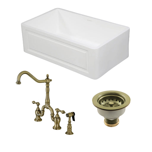 Original price $2,329.85 - Original price $2,329.85Original price $2,329.85$2,837.10$2,837.10 - $2,837.10Current price $2,837.10| /Arcticstone 30-Inch White Stone Single Bowl Farmhouse Kitchen Sink with Deck Mount Bridge Kitchen Faucet with Side Sprayer and Basket Strainer, Antique Brass