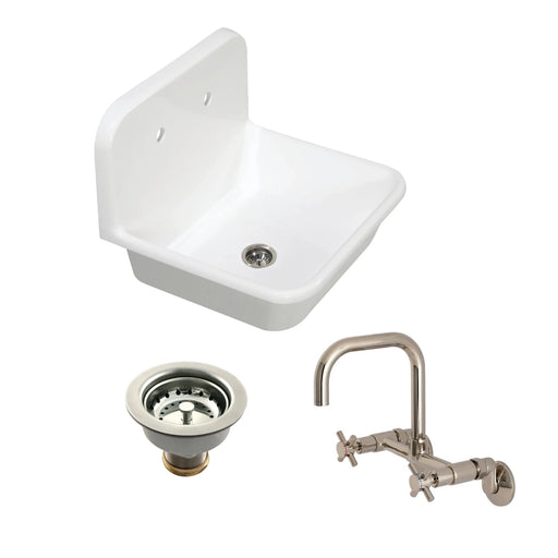 Kingston BrassKingston Brass Kitchen Sink Combo - Arcticstone 24-Inch White Stone Single Bowl Top-Mount Kitchen Sink with Wall-Mount Bridge Kitchen Faucet and Ba...