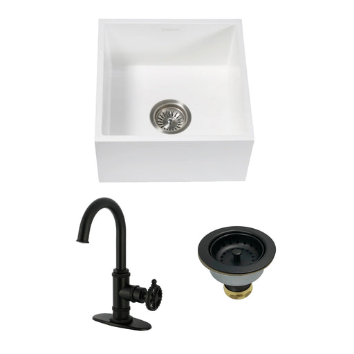 Kingston BrassKingston Brass Kitchen Sink Combo - Arcticstone 15-Inch White Stone Undermount Single Bowl Farmhouse Bar Sink with Deck Mount Bar Faucet and Basket...