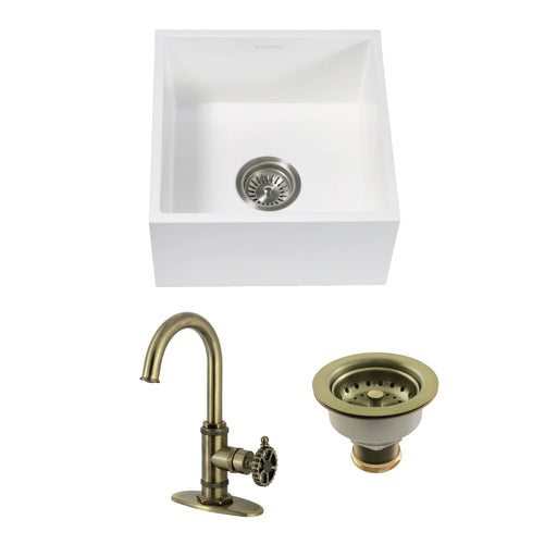 Original price $1,279.85 - Original price $1,279.85Original price $1,279.85$1,677.95$1,677.95 - $1,677.95Current price $1,677.95| /Arcticstone 15-Inch White Stone Undermount Single Bowl Farmhouse Bar Sink with Deck Mount Bar Faucet and Basket Strainer, Antique Brass