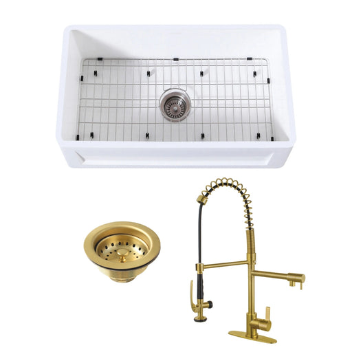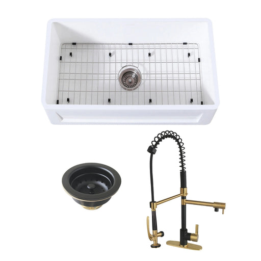 Original price $2,259.85 - Original price $2,259.85Original price $2,259.85$2,943.76$2,943.76 - $2,943.76Current price $2,943.76| /Arcticstone 30-Inch White Stone Single Bowl Farmhouse Kitchen Sink with Deck Mount Kitchen Faucet and Basket Strainer, Brushed Brass/Matte Black