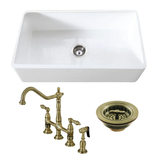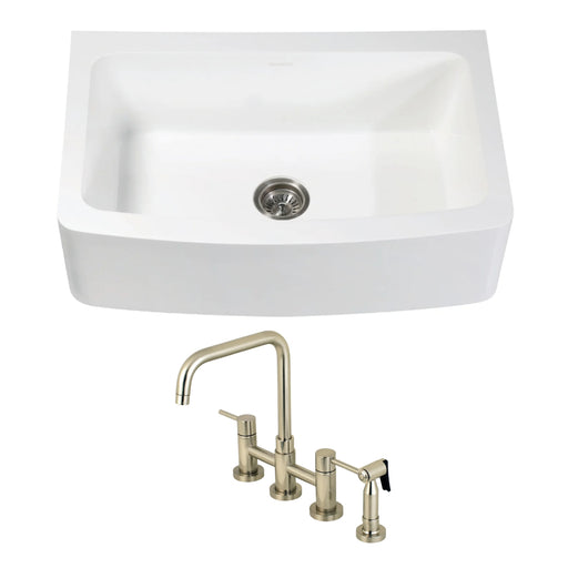 Kingston BrassKingston Brass Kitchen Combo - Arcticstone 33-Inch White Stone Single Bowl Farmhouse Kitchen Sink with Deck Mount Bridge Kitchen Faucet with Brass ...
