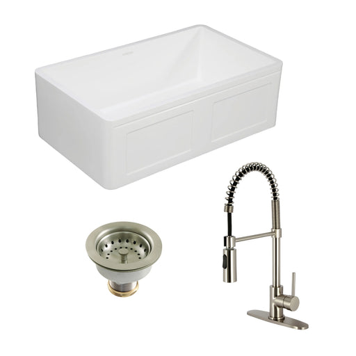 Original price $2,159.85 - Original price $2,159.85Original price $2,159.85$2,686.75$2,686.75 - $2,686.75Current price $2,686.75| /Arcticstone 33-Inch White Stone Single Bowl Farmhouse Kitchen Sink with Deck Mount Kitchen Faucet and Basket Strainer, Brushed Nickel
