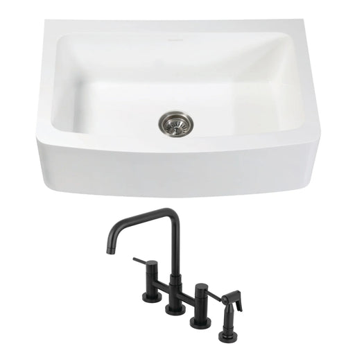 Original price $2,139.85 - Original price $2,139.85Original price $2,139.85$2,618.85$2,618.85 - $2,618.85Current price $2,618.85| /Arcticstone 30-Inch White Stone Single Bowl Farmhouse Kitchen Sink with Deck-Mount Bridge Kitchen Faucet and Basket Strainer, Matte Black