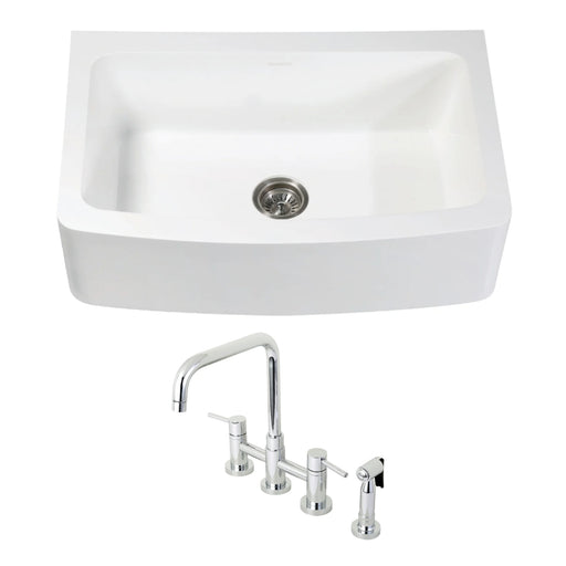 Original price $2,089.90 - Original price $2,089.90Original price $2,089.90$2,551.00$2,551.00 - $2,551.00Current price $2,551.00| /Arcticstone 33-Inch White Stone Single Bowl Farmhouse Kitchen Sink with Deck Mount Bridge Kitchen Faucet with Side Sprayer and Basket Strainer, Polished Chrome
