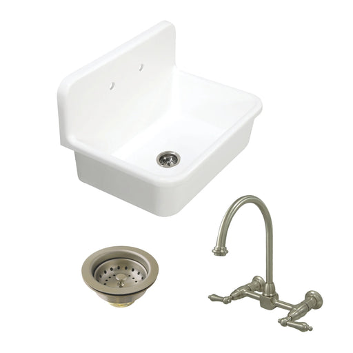 Kingston BrassKingston Brass Kitchen Sink Combo - Arcticstone 30-Inch White Stone Single Bowl Top-Mount Kitchen Sink with Wall-Mount Bridge Kitchen Faucet and Ba...