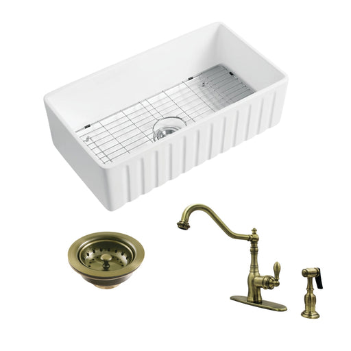 Original price $1,229.85 - Original price $1,229.85Original price $1,229.85$1,542.15$1,542.15 - $1,542.15Current price $1,542.15| /Kaolin 30-Inch Ceramic Single Bowl Farmhouse Kitchen Sink with Widespread Kitchen Faucet with Sprayer and Basket Strainer, Antique Brass