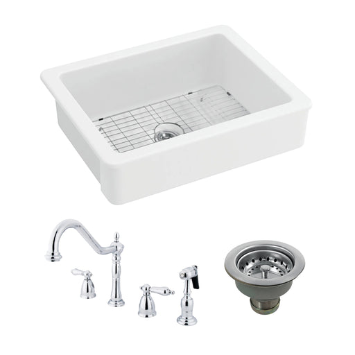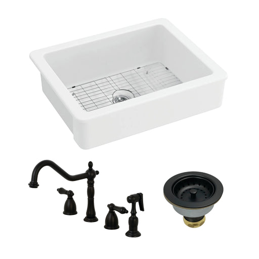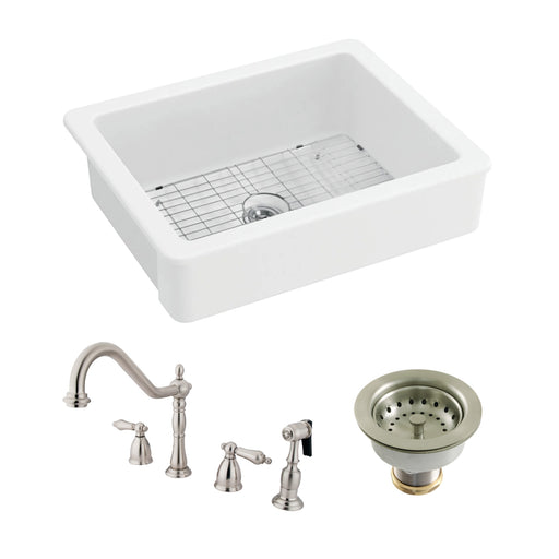 Kingston BrassKingston Brass Kitchen Sink Combo - Kaolin 30-Inch Ceramic Single Bowl Farmhouse Kitchen Sink with Widespread Kitchen Faucet with Sprayer and Bask...