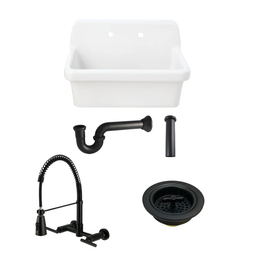 Original price $2,119.74 - Original price $2,119.74Original price $2,119.74$2,492.66$2,492.66 - $2,492.66Current price $2,492.66| /Doriteal 30" Ceramic Single Bowl Wall Mount Kitchen Sink with Wall-Mount Pre-Rinse Bridge Kitchen Faucet and Basket Strainer, Matte Black