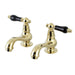 Crafted in commendations to English nobility, the exemplary design of this faucet manifests regality and elegance with its black porcelain handles. Basin tap faucets are a traditional design that allows users to mix water to their desired temperature within the sink basin. With lever handles for ease of use, the perfect temperature can be acquired with the separate cold and hot water taps. The Duchess Basin Tap Faucet and its featured sturdy brass construction and premium polished brass finish are guaranteed to glamorize your home's traditional ensemble for years to come. Glamorize your home today with the traditional elegance of this faucet.