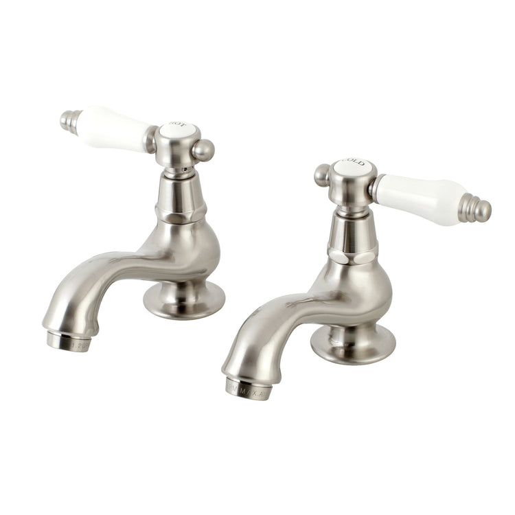 The graceful elegance of timeless design is beautifully merged between British flair and Victorian delicacy within this faucet's white porcelain levers. Basin tap faucets are a traditional design that allows users to mix water to their desired temperature within the sink basin. With lever handles for ease of use, the perfect temperature can be acquired with the separate cold and hot water taps. The Bel-Air Basin Tap Faucet and its featured sturdy brass construction and premium brushed nickel finish are guaranteed to glamorize your home's traditional ensemble for years to come. Varnish your bathroom with this state-of-the-art fixture.
