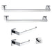 • 5-piece set includes: 18" (457.2 mm) towel bar, 24" (609.6 mm) towel bar, towel holder, robe hook, and toilet paper holder