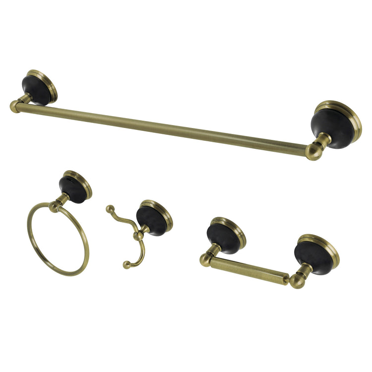 Kingston Heirloom BAK9111478AB - Water Onyx 4-Piece 24-Inch Towel Bar Bathroom Accessory Set, Antique Brass