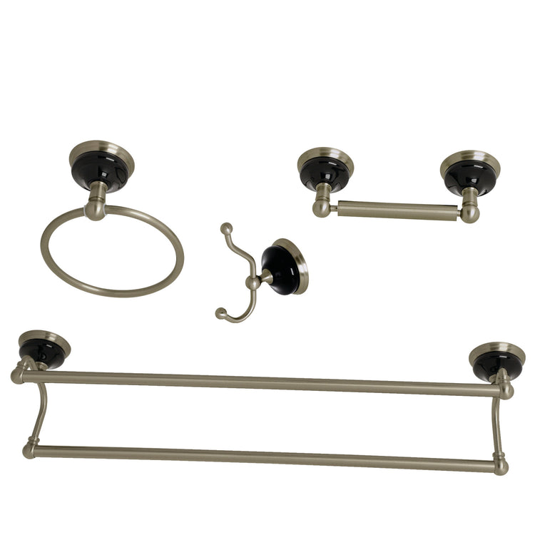 Kingston Heirloom BAK9113478BN - Water Onyx 4-Piece 24-Inch Dual Towel Bar Bathroom Accessory Set, Brushed Nickel