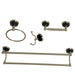 • 4-piece set includes: 24" dual towel bar, towel ring, robe hook, and toilet paper holder