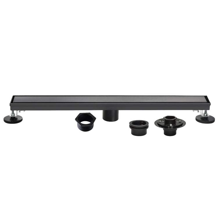 Kingston Watercourse BSFK2820 28-Inch Stainless Steel Linear Shower Drain with Reversible Tile Insert and Flat Grate, Drain with Base Flange and Hair Strainer, Matte Black