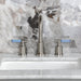 This faucets Neoprene coated lever handles and sleek tubular spout create a bold and edgy design in your bathroom. The Synchronous widespread bathroom faucet with pop-up drain. Its sturdy brass construction and premium brushed nickel finish are guaranteed to glamorize your home's modern ensemble for years to come. Ideal for more spacious bathrooms. A matching finish drain is also included.