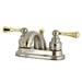 Kingston Tulare KB3609BL - Vintage Double-Handle 3-Hole Deck Mount 4-Inch Centerset Bathroom Faucet with Pop-Up Drain, Brushed Nickel/Polished Brass