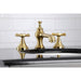 Kingston Tulare KC7067BEX - Essex Two-Handle 3-Hole Deck Mount Widespread Bathroom Faucet with Brass Pop-Up, Brushed Brass