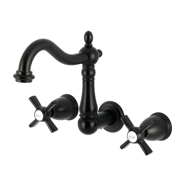 Kingston Heirloom KS1250ZX - Millennium Double-Handle 3-Hole Wall Mount Bathroom Faucet, Matte Black