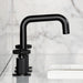 Introducing the widespread faucet from the Levante Collection by Kingston Brass. With its high-arch tubular spout and modern knurled wheel handles atop cylindrical bases, this faucet is designed to be the centerpiece of any contemporary bathroom. The over 5-inch projection and 5-inch clearance provide ample space for your bathing rituals. Plus, a matching finish push pop-up drain is included, perfectly complementing the faucet's aesthetic.