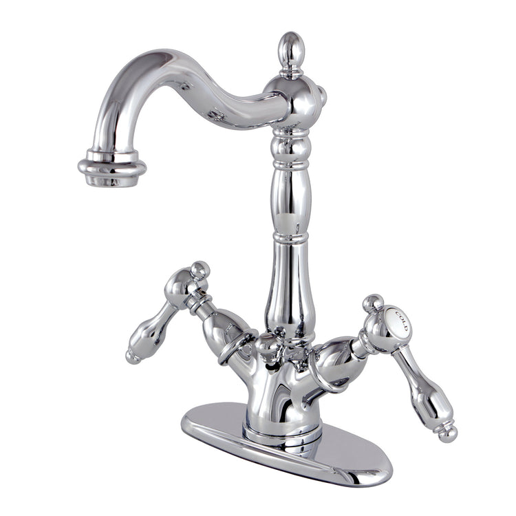 Kingston Heirloom KS1431TAL - Tudor Double-Handle 1-or-3 Hole Deck Mount 4-Inch Centerset Bathroom Faucet with Brass Pop-Up, Polished Chrome