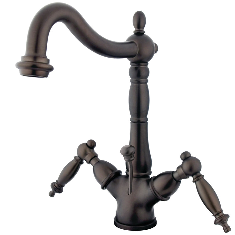 Kingston Heirloom KS1435TL - Heritage Double-Handle 1-or-3 Hole Deck Mount 4-Inch Centerset Bathroom Faucet with Brass Pop-Up, Oil Rubbed Bronze