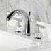 Kingston Tulare KS2961KNL - Convergent Two-Handle 3-Hole Deck Mount Widespread Bathroom Faucet with Knurled Handle and Brass Pop-Up, Polished Chrome