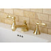 Kingston Tulare KS4472FLTwo-Handle 3-Hole Deck Mount Widespread Bathroom Faucet with Brass Pop-Up, Polished Brass
