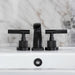 Kingston Sona KS4940KNL - Convergent Two-Handle 3-Hole Deck Mount Widespread Bathroom Faucet with Knurled Handle and Brass Pop-Up, Matte Black