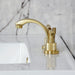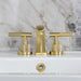 This faucet's modern features create a bold and edgy design in your bathroom. The Convergent widespread bathroom faucet with knurled handle and brass pop-up drain and its featured sturdy brass construction and premium brushed brass finish are guaranteed to glamorize your home's modern ensemble for years to come. Ideal for more spacious bathrooms, widespread faucets are more spread apart and feature a 3-hole installation. A matching finish drain is also included.