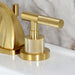 Kingston Sona KS4947KNL - Convergent Two-Handle 3-Hole Deck Mount Widespread Bathroom Faucet with Knurled Handle and Brass Pop-Up, Brushed Brass