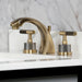 Kingston Sona KS4983KNL - Convergent Two-Handle 3-Hole Deck Mount Widespread Bathroom Faucet with Knurled Handle and Brass Pop-Up, Antique Brass