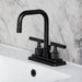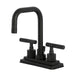 Kingston Sona KS6640KNL - Convergent Knurled Double-Handle 3-Hole Deck Mount 4-Inch Centerset Bathroom Faucet with Brass Pop-Up, Matte Black