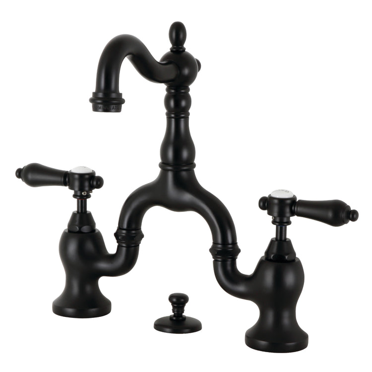Kingston Heirloom KS7970BAL - Heirloom Two-Handle 3-Hole Deck Mount Bridge Bathroom Faucet with Brass Pop-Up, Matte Black