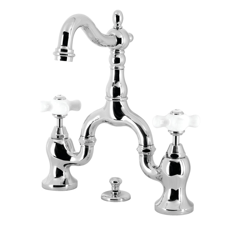 Kingston Heirloom KS7971PX - English Country Two-Handle 3-Hole Deck Mount Bridge Bathroom Faucet with Brass Pop-Up, Polished Chrome