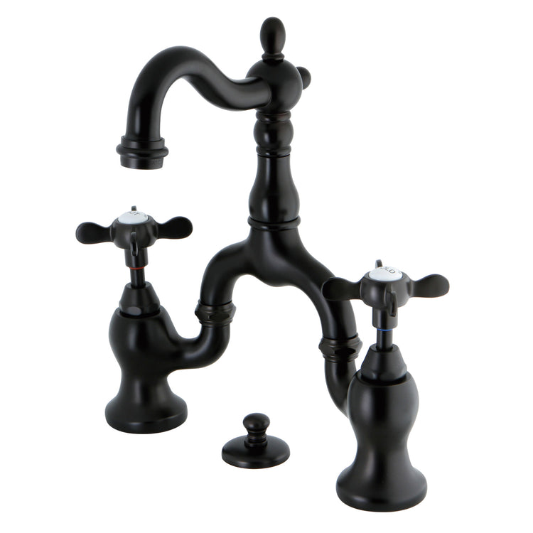 Kingston Heirloom KS7975BEX - Essex Two-Handle 3-Hole Deck Mount Bridge Bathroom Faucet with Brass Pop-Up, Oil Rubbed Bronze