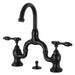 Kingston Heirloom KS7990TAL - Tudor Two-Handle 3-Hole Deck Mount Bridge Bathroom Faucet with Brass Pop-Up, Matte Black