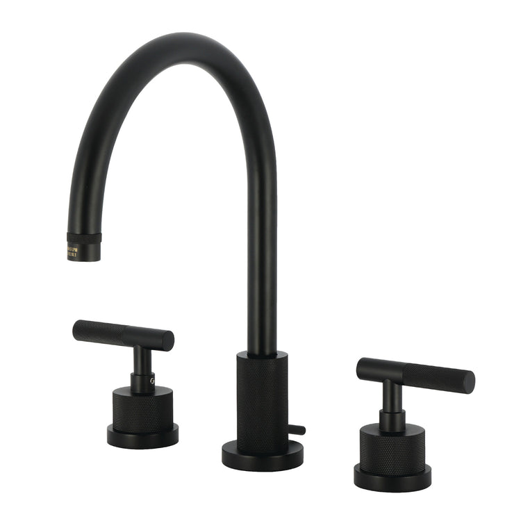 Kingston Sona KS8920KNL - Convergent Two-Handle 3-Hole Deck Mount Widespread Bathroom Faucet with Knurled Handle and Brass Pop-Up, Matte Black